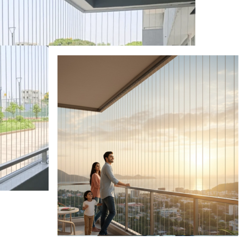 Invisible grills are modern safety solutions made of thin, high-tensile stainless steel cables that provide protection without blocking the view. They are commonly used in balconies and windows to ensure safety while maintaining aesthetics. These grills are durable, rust-resistant, and blend seamlessly with contemporary home designs.